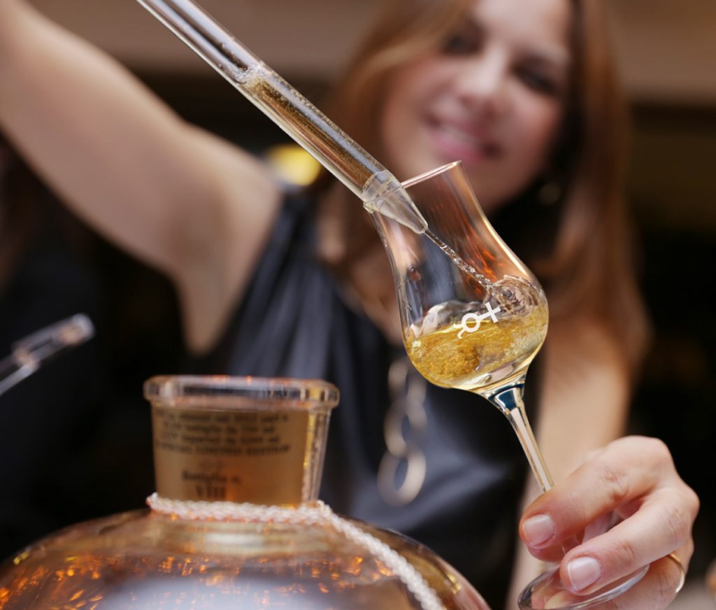 L'esame visivo valuta la limpidezza e il colore, che varia da cristallino (Grappa giovane) a giallo dorato o ambrato (se invecchiata).