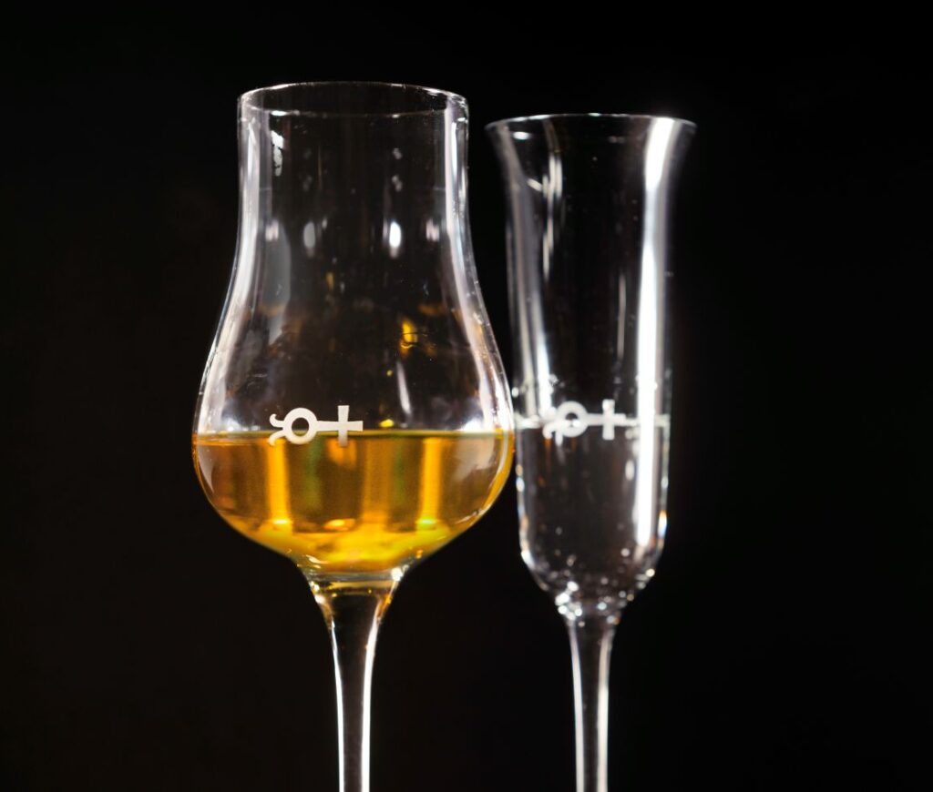 Il calice è lo strumento fondamentale del degustatore: l'ideale è a forma di tulipano allungato e stretto, per le grappe giovani e a balloon per quelle invecchiate e riserva. Questa forma concentra gli aromi e crea lo spazio per permettere al distillato di esprimere tutti i suoi meravigliosi profumi senza che la gradazione alcolica risulti aggressiva.