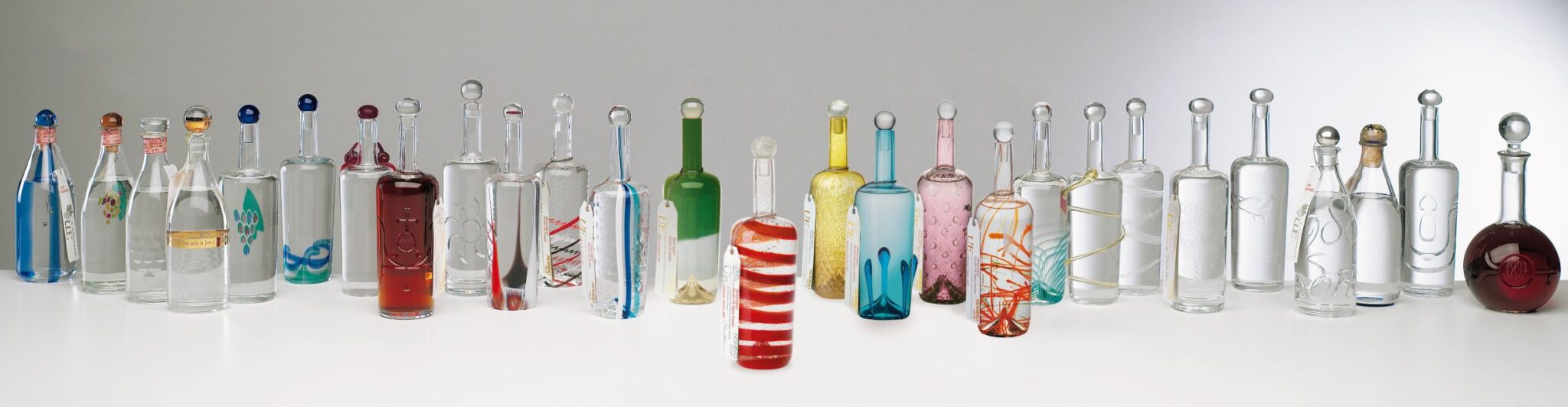 Per sottolineare il valore e l’unicità di questa nuova acquavite, il 1° dicembre 1984 chiediamo a Venini, tra i più importanti mastri vetrai in Murano, di soffiare a mano volante una bottiglia con inserita una murrina raffigurante il grappolo d’uva. È il primo esemplare di quella che diventerà la Collezione Nonino ÙE® Acquavite d’Uva Cru Monovitigno® Picolit, che si arricchirà di anno in anno di bottiglie millesimate realizzate artigianalmente da nomi del calibro di VeniniBaccarat e Riedel. Oggi la collezione fa parte dell’esposizione permanente del design italiano al Triennale Design Museum di Milano per il tema: “Alto Artigianato dello Spirito”.
